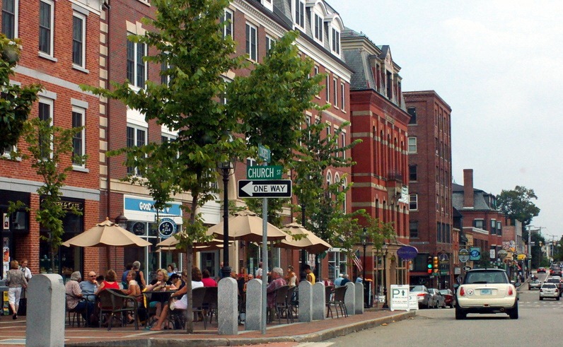Many of us who are lucky enough to live in downtown Princeton recognize the benefits of living in a close-knit community where we frequently see our neighbors and interact spontaneously with friends while shopping or walking around. A University of New Hampshire Study, funded in part by the EPA, went further and actually looked to see to what extent walkability correlated with measures of social wellbeing among 700 residents of Portsmouth NH (pictured below) and Manchester NH.