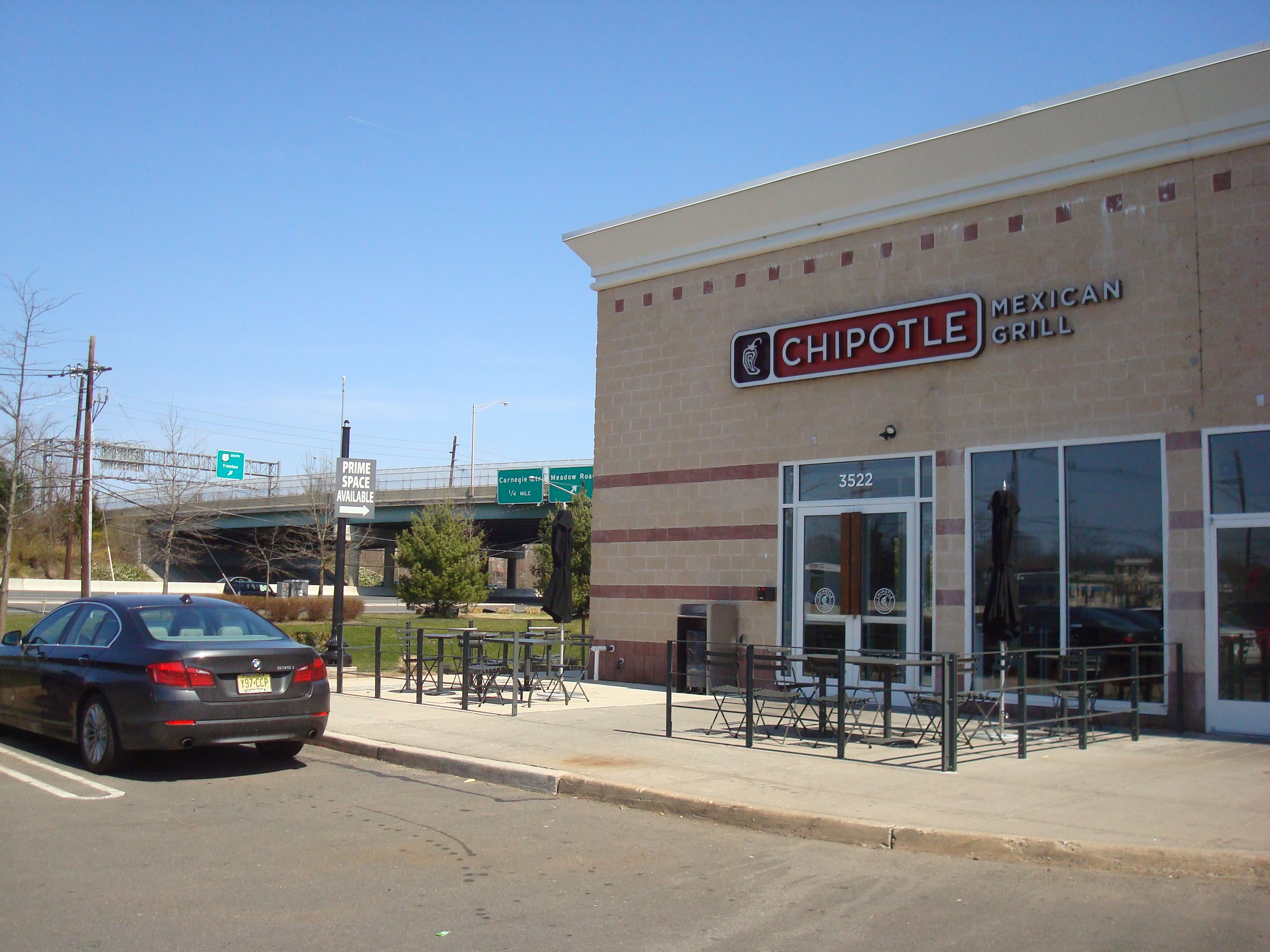 The view from the outdoor dining area at West Windsor Chipotle Mexican Grill. Downtown Princeton is definitely more picturesque.