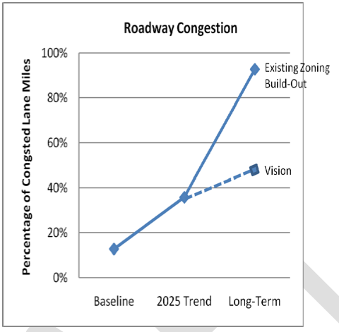 According to the Route 1 Growth Strategy report, we can avoid congestion reaching unmanageable levels by revising zoning to enable increased use of transit. (Click to expand)
