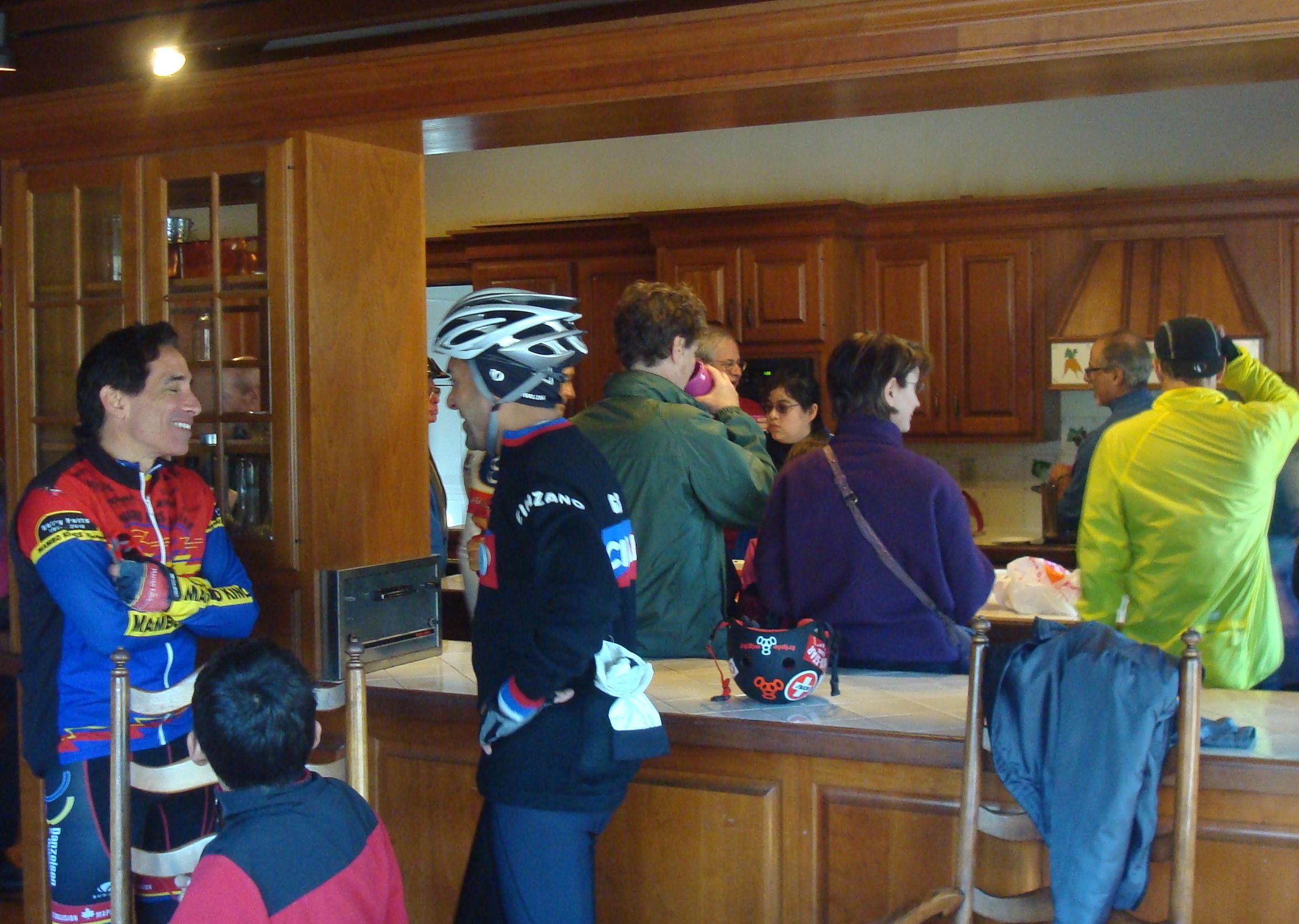 At Mountain Lakes House, hot cider, cookies and doughnuts were provided (thanks again to the PBAC members for organizing!). The riders took 20 or 30 minutes to relax: