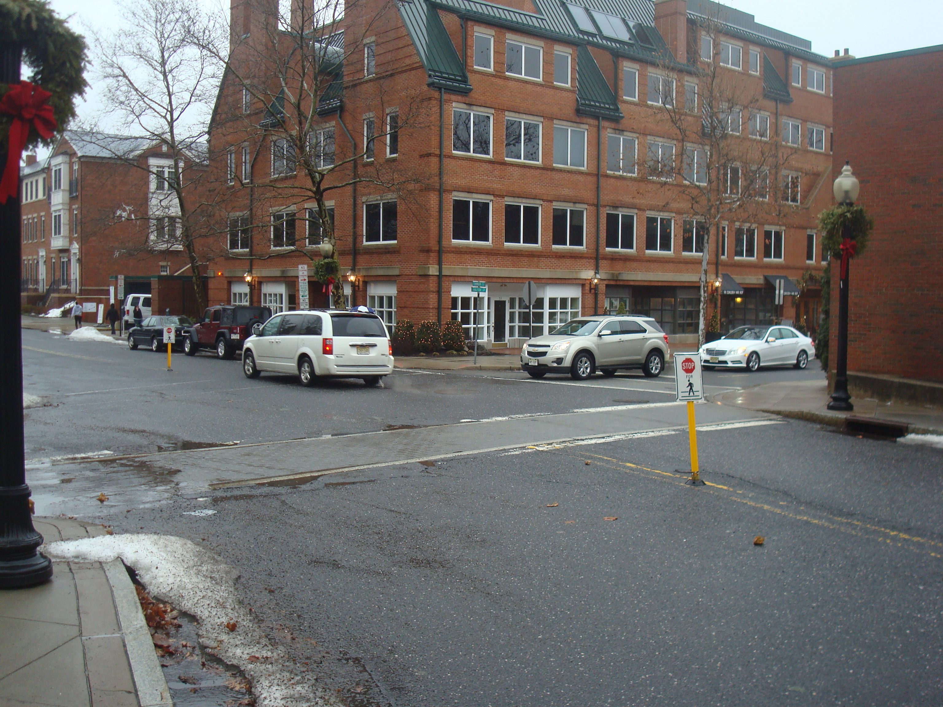 In-street 'Stop For Pedestrians' signs on Chambers Street in downtown Princeton. (click to expand)