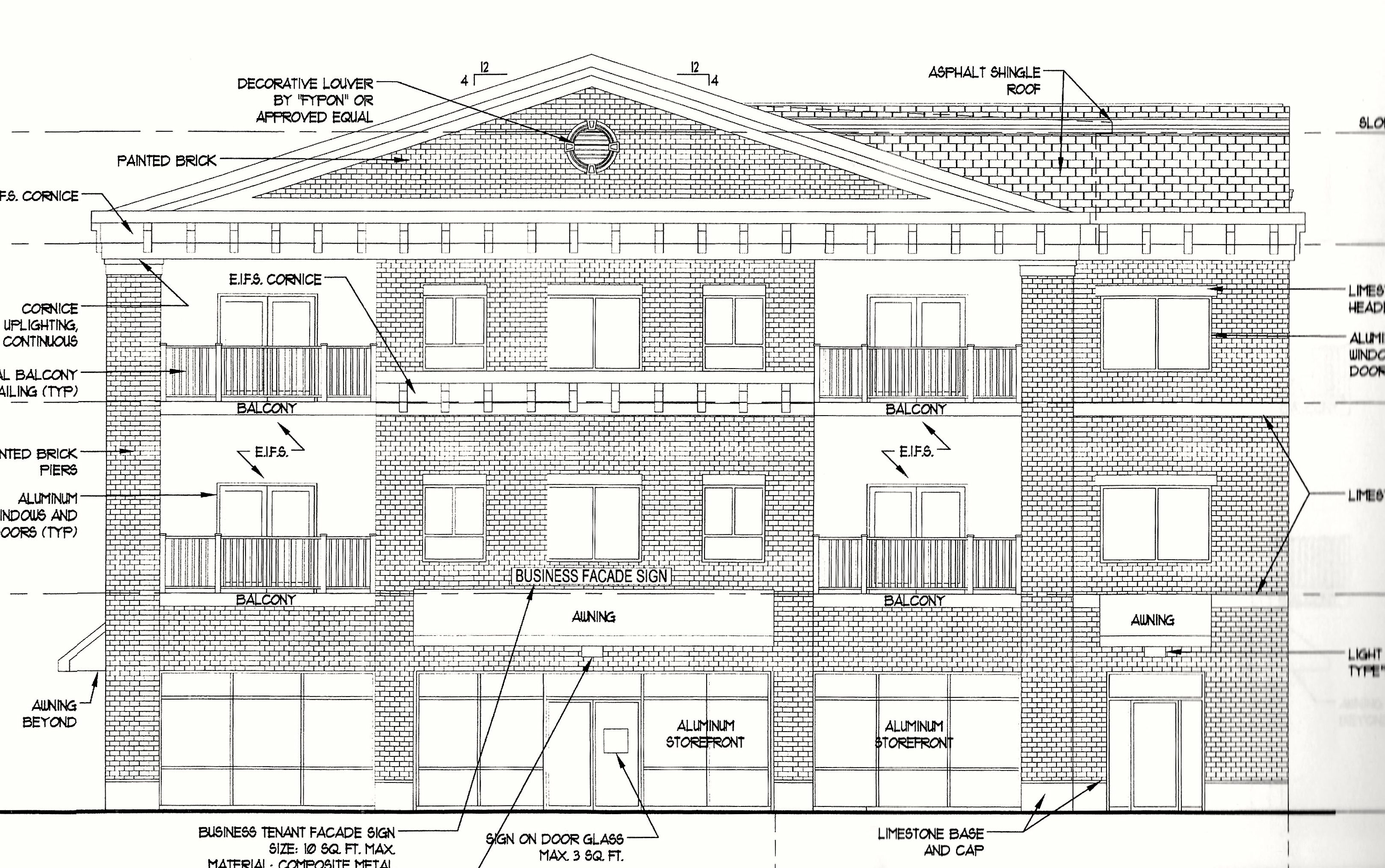 Revised Plan for 255 Nassau Street redevelopment, as seen from the front. (Plans from Princeton Planning Board by a public records request- Click to expand.)