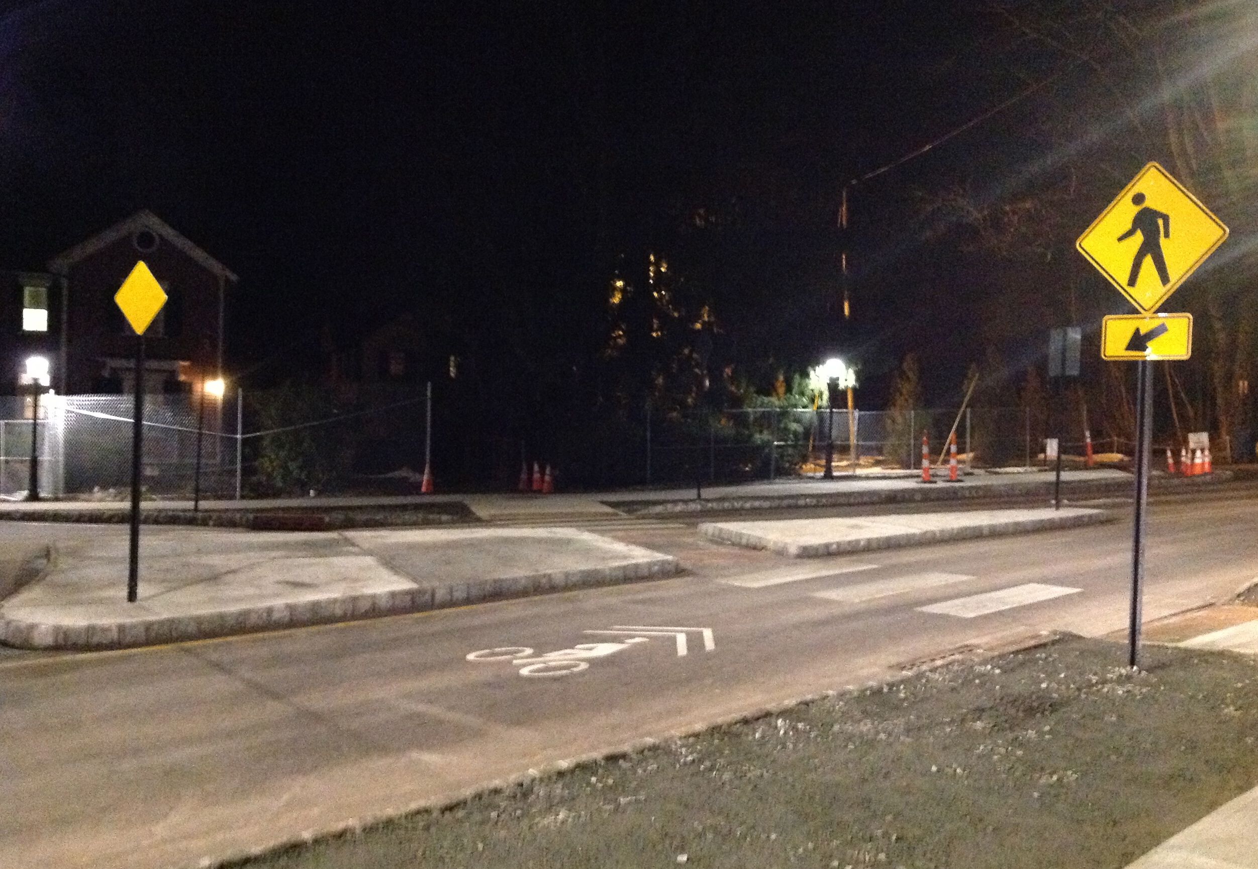 Roundabouts are not always popular with car drivers, and last week, an article at urban planning blog ‘Better! Cities and Towns’ argued that modern roundabouts are often no good for pedestrians. The roundabout at Alexander Street is being constructed as part of Princeton University’s ‘Arts and Transit’ project, and a major objective is to link the buildings of Princeton University on either side of Alexander Street. A large number of students walk and cycle across this thoroughfare to reach residential areas such as Forbes College on the west side. Fortunately, this new roundabout includes signficant signage and striping to indicate pedestrian walkways, but we will have to see how well it performs in practice.