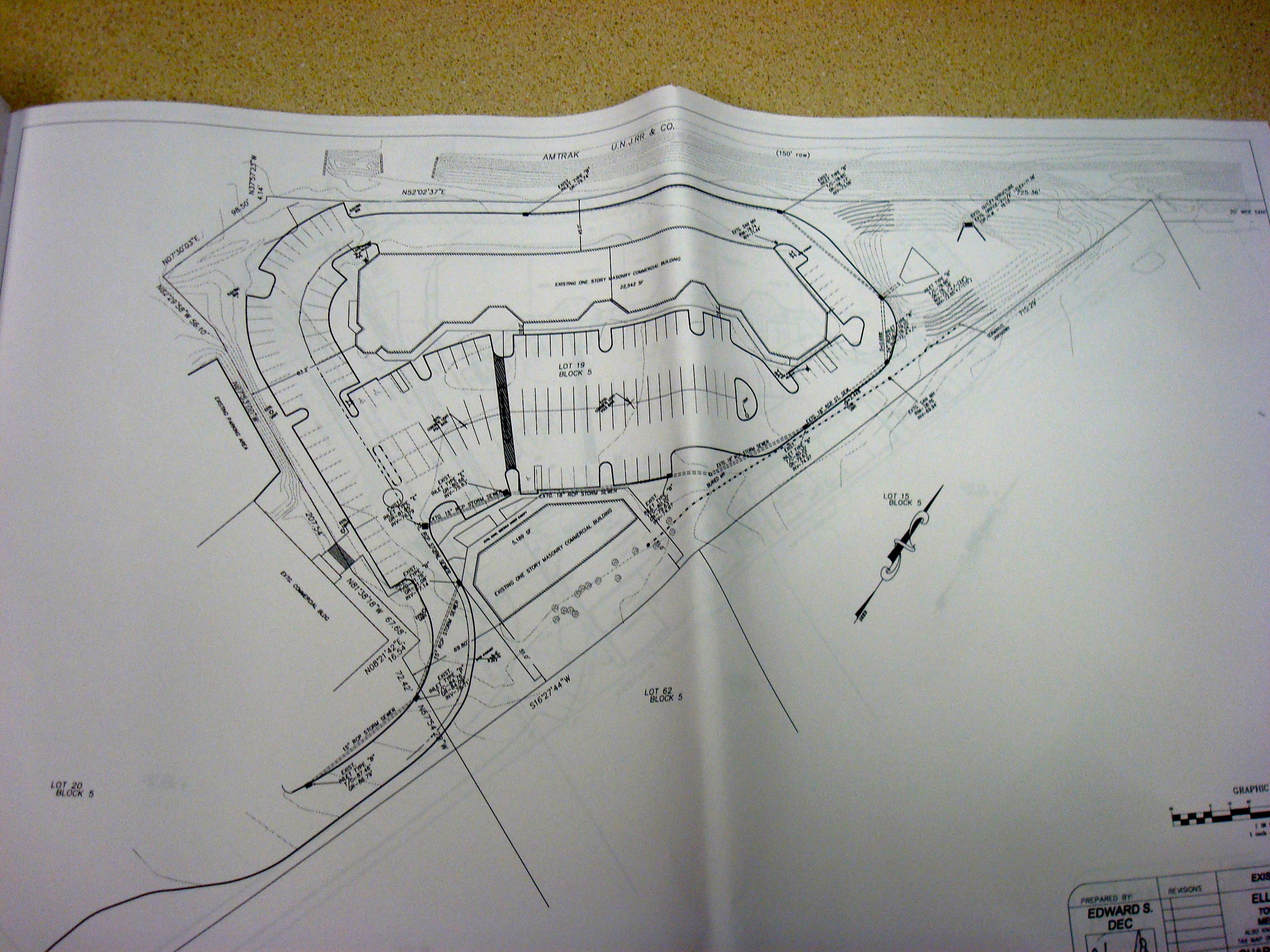 The Rodrigues property backs onto the Amtrak/NJ Transit rail line, with an entrance via Cranbury Road (Route 615). Two buildings are currently standing at the site, as seen in the existing site plan below (yes, these are some grainy photos- the West Windsor planning office, like the one in Princeton, does not have electronic copies of site plans):