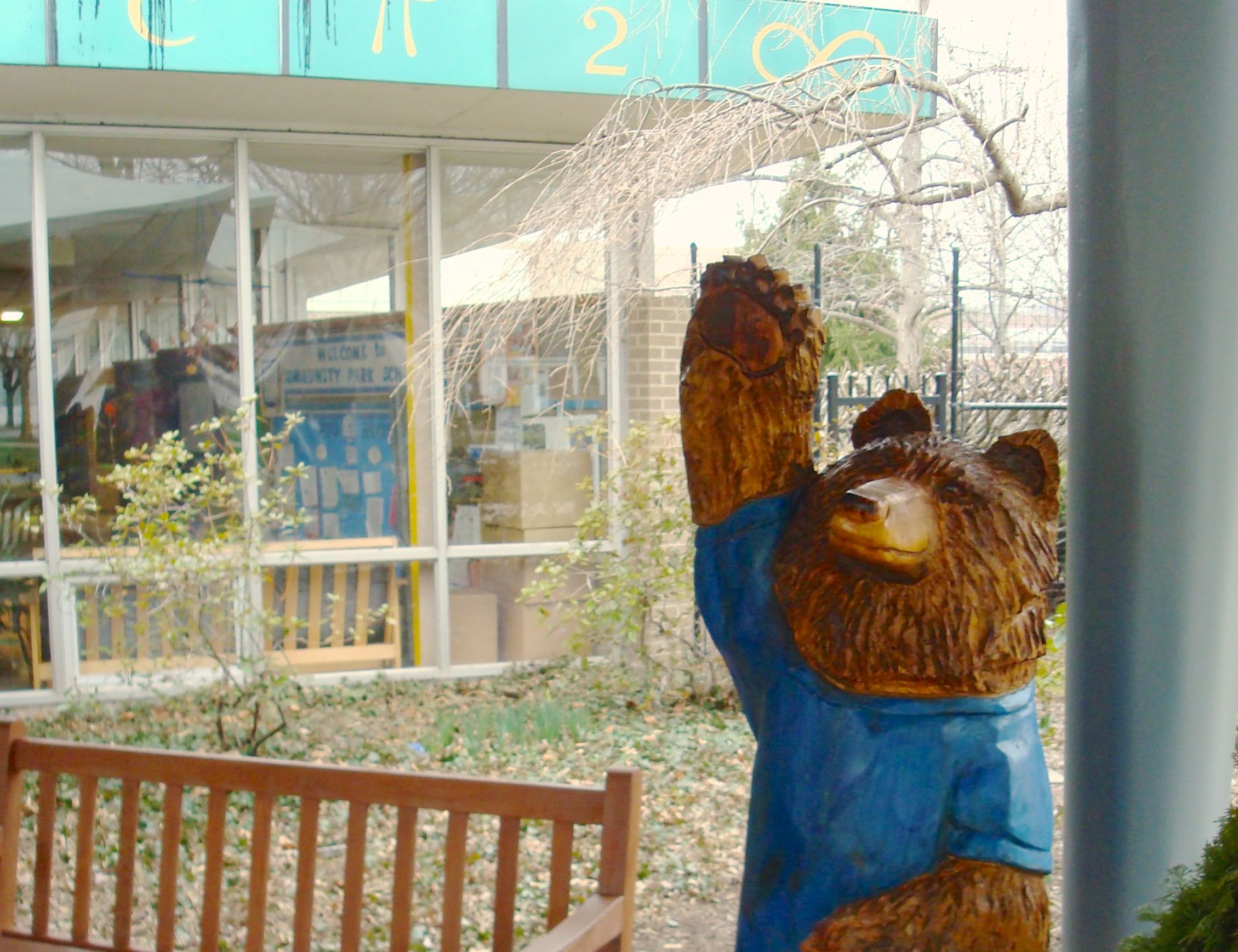 A friendly bear at the door to Community Park Elementary in Princeton. Community Park’s enrollment will grow only modestly in the next 5 years (click to expand.)