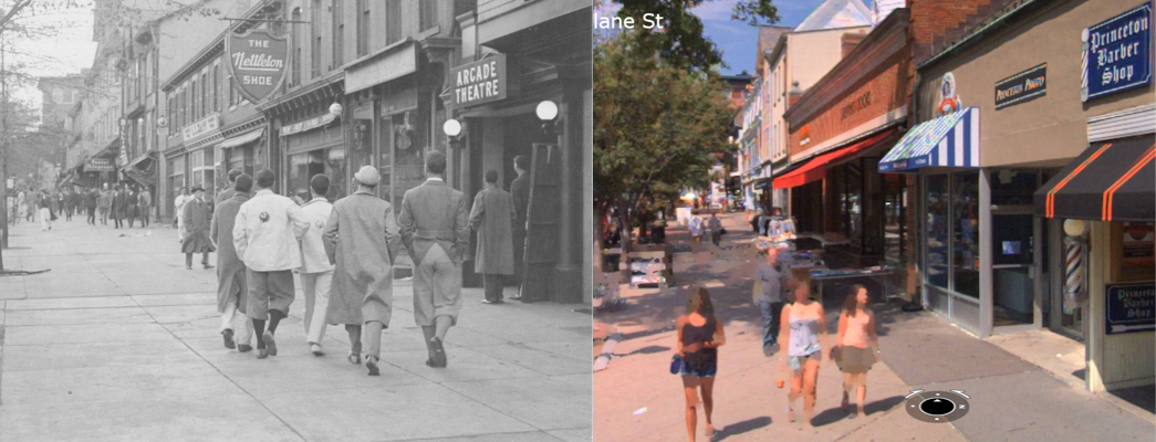 Nassau Street in the 1920s (left) and today (right). Image credits: PU Mudd library and Bing Maps. (click to expand)