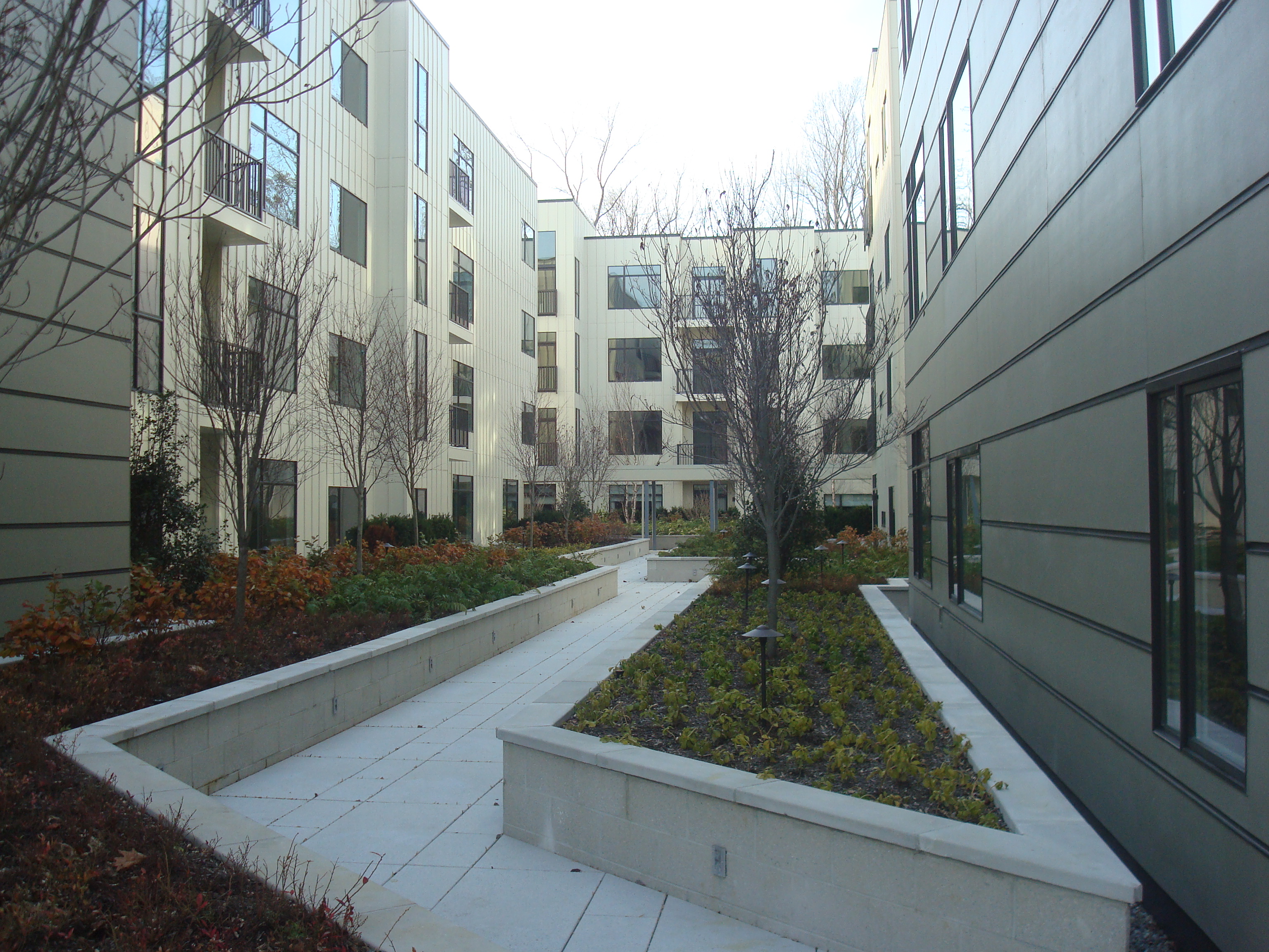 As is the case with the ‘Residences At Palmer Square‘, steps lead to interior courtyards in the middle of the complex.