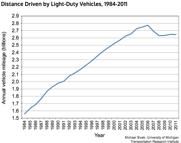 Although your chart says 1980-2013, the actual data from the linked article only goes to 2011. It’s 2015 now, and basing your conclusions on what happened to vehicle miles on stale data is especially problematic given trends since that time.