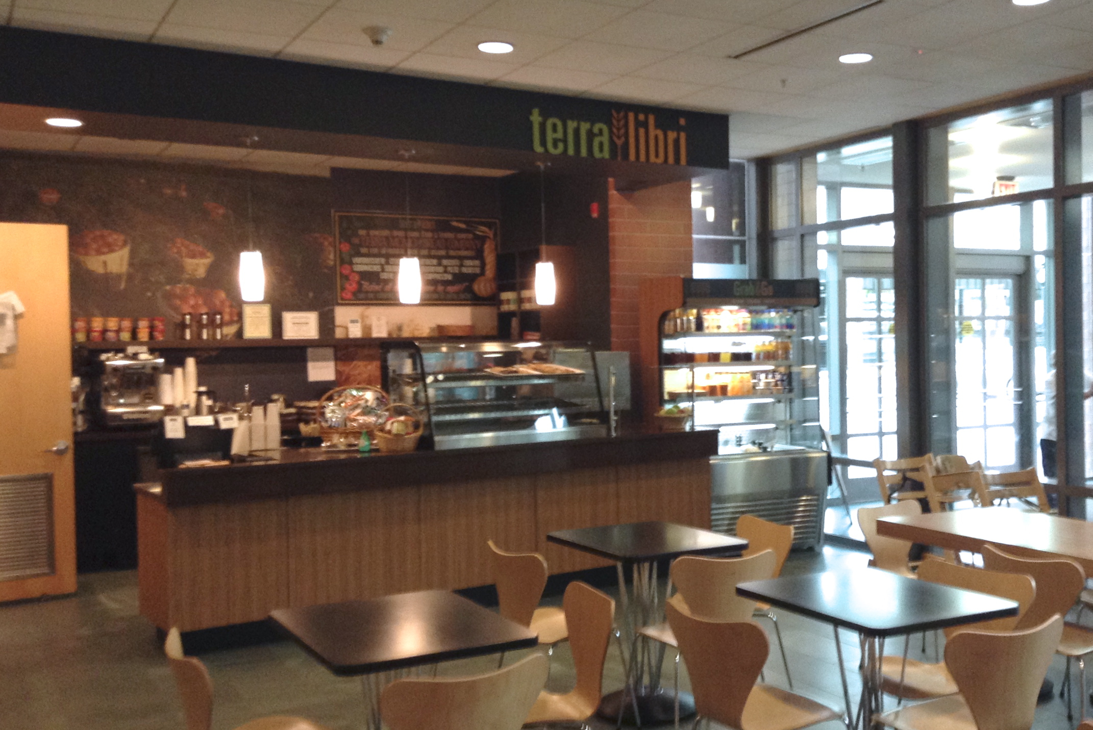 If every library visitor used it, ‘free’ parking could be argued to be just as necessary for library operations as, say, electricity. But many people walk or bike, and these people deserve at least equal treatment. Walking or cycling reduces downtown congestion, air pollution, and carbon emissions. The Library should therefore offer a choice to its customers: either to validate parking, or get some other reward. That reward could be as simple as a voucher for a beverage from the ‘Terra Libri’ café (pictured above). Or the Library could institute a ‘Library Bucks’ program, allowing users to earn credit that could be used for DVD rental (or to pay overdue book fines!). Either way, in 2015, it is bizarre, and basically indefensible, that the Princeton Public Library provides a special perk only to its users who arrive by the most-polluting mode of transportation.