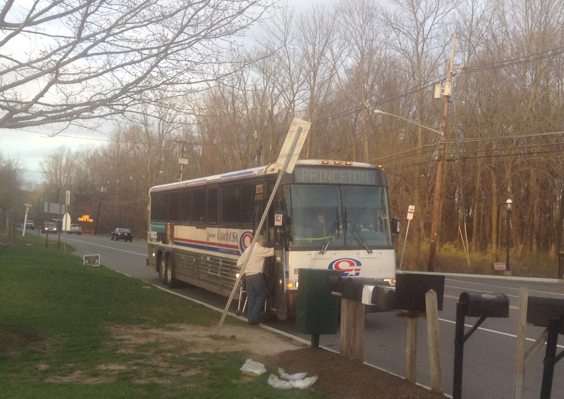 Suburban Transit 100 bus service, which connects Princeton and New Brunswick, seen here in Kingston. (click to expand)