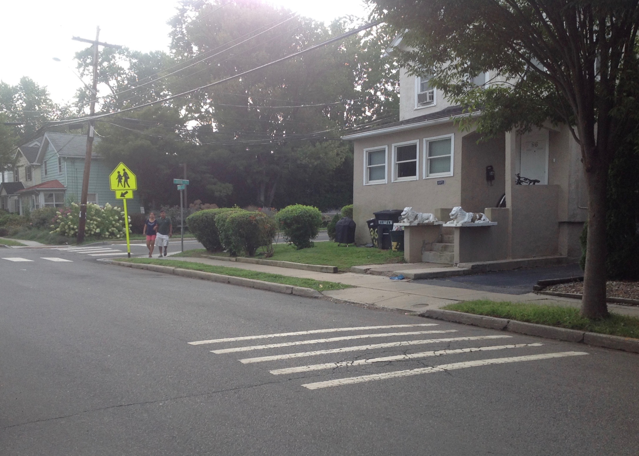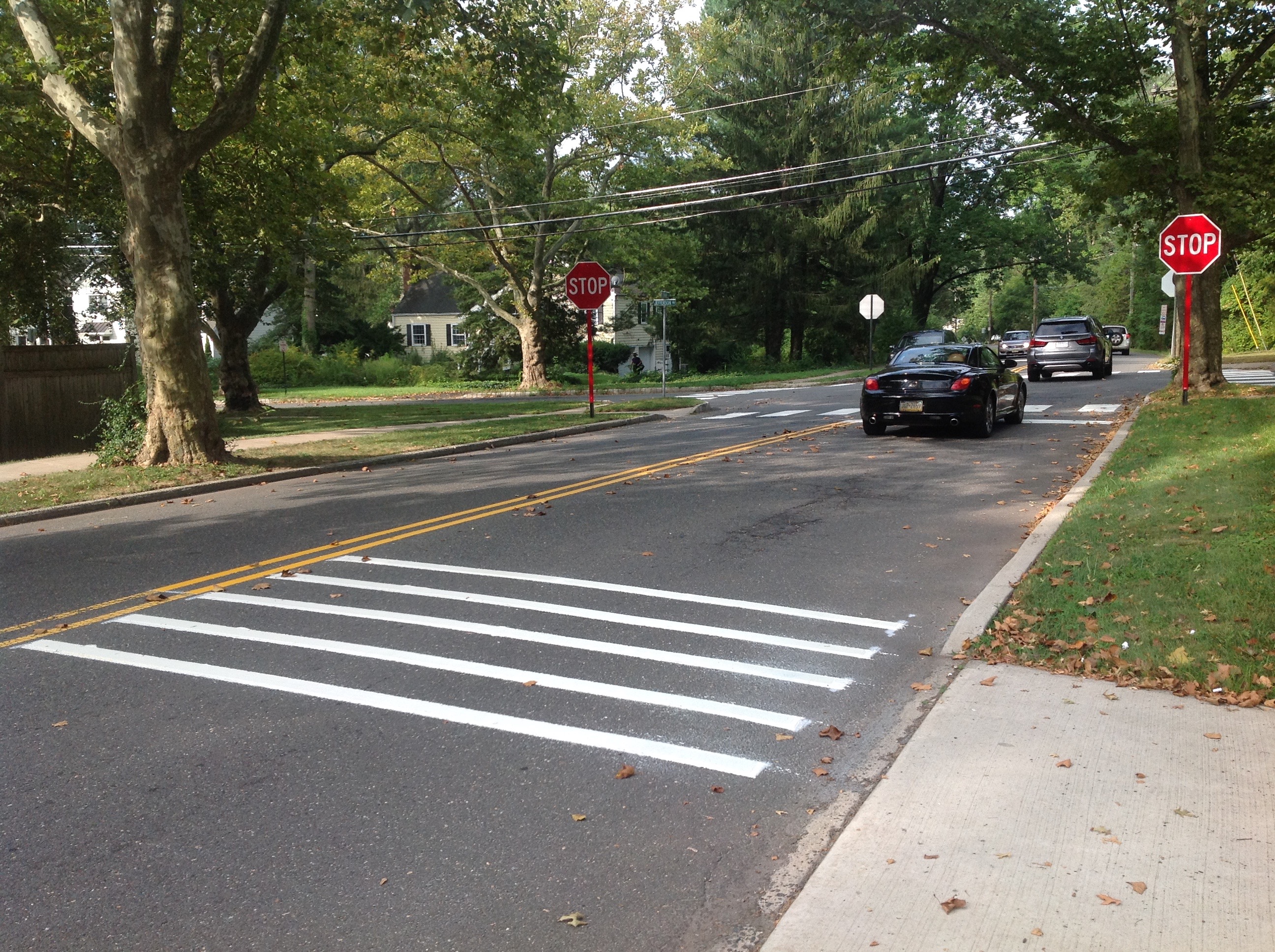 Many Princeton residents complain about speeding cars on their local streets. The town, however, banned speed bumps through a Council ordinance in 2013. With no speed bump option, the town is increasingly making use of ‘rumble strips‘ to limit speed at intersections around Princeton. The rumble strips look like painted white lines across the road lane, but are in fact made of a small ridge of hardened thermoplastic that transmits vibrations and an audible ‘rumble’ to drivers. Recently, rumble strips have been added on Terhune Road at the intersection with Jefferson Road, as shown in the picture above. But this speed reduction technique is also used at other locations around the town, such as at Birch Avenue and John Street, in the Witherspoon-Jackson neighborhood: