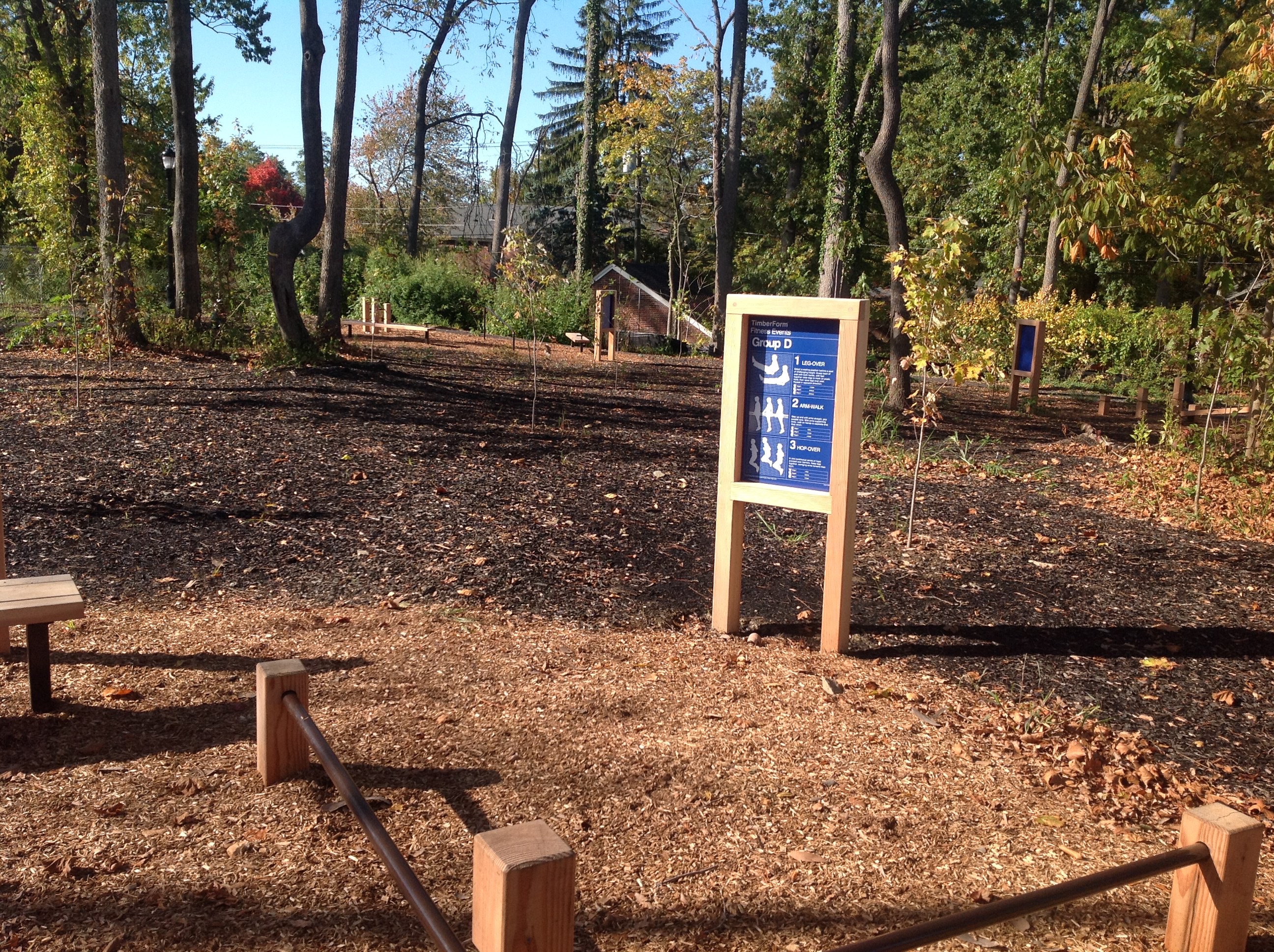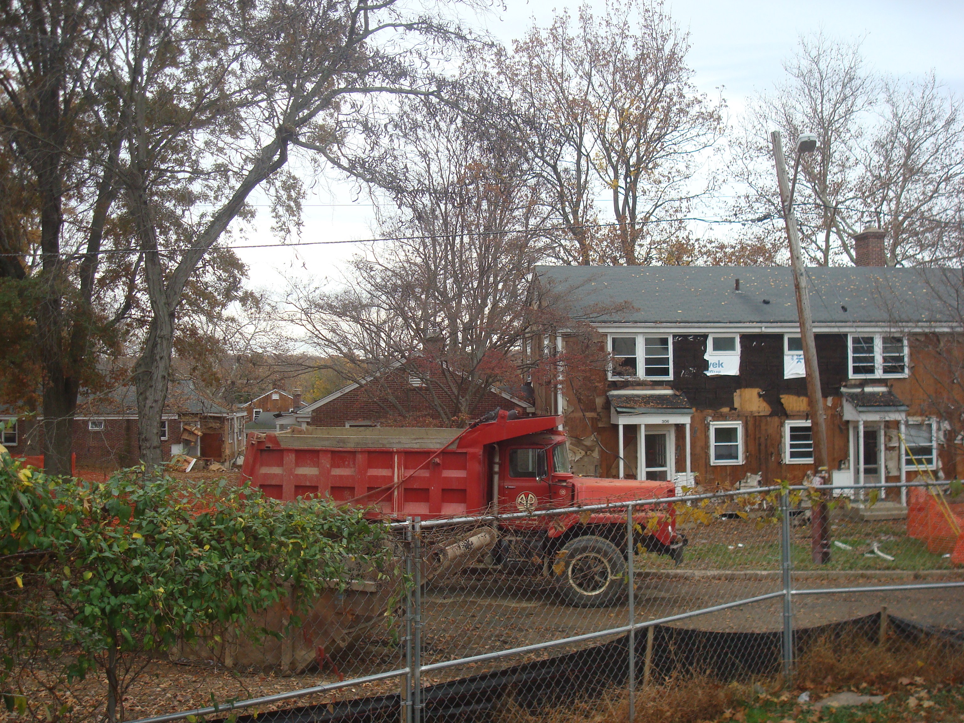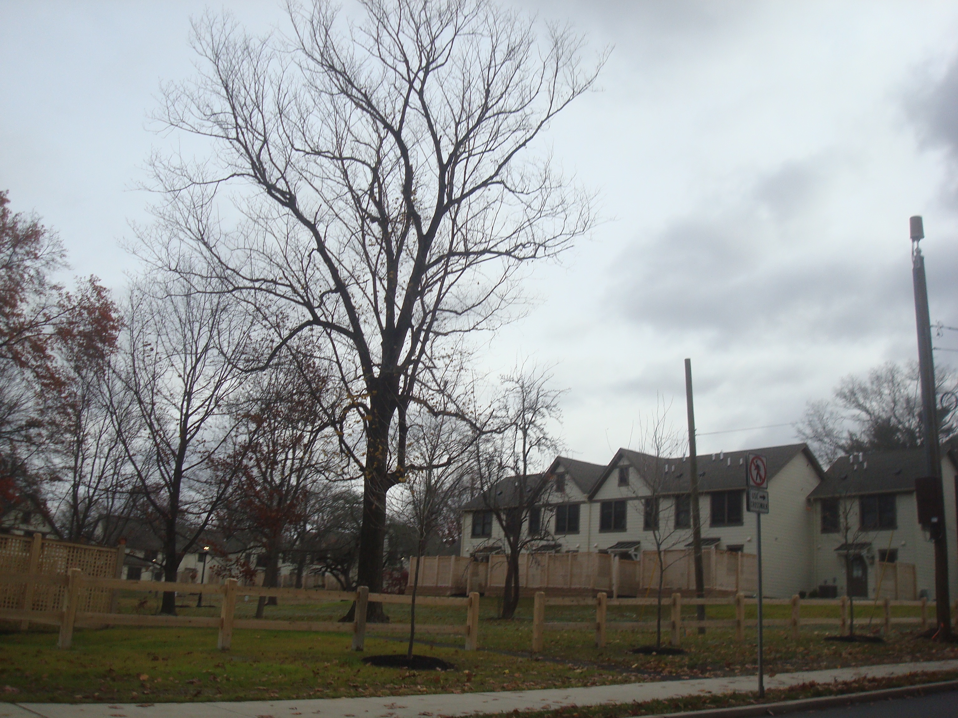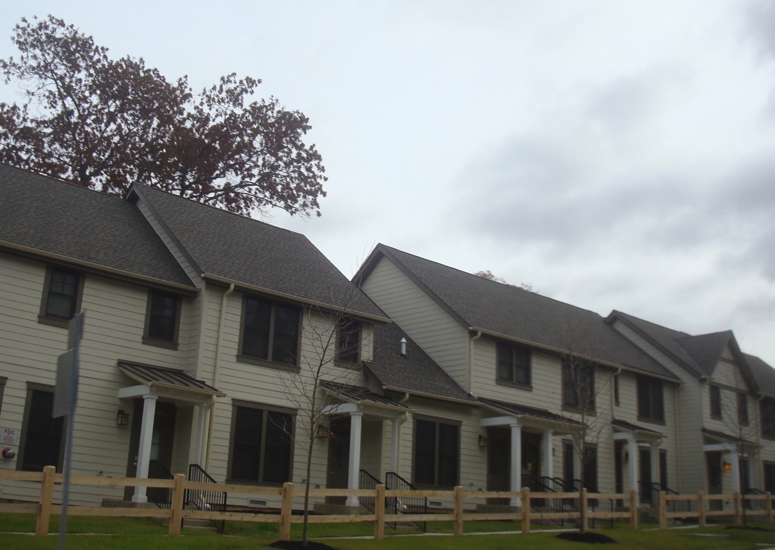 Most of the homes are 2-level townhouses. Although the site is very close to downtown, with a ‘walkscore‘ of 77 (very walkable), the overall atmosphere is suburban. Parking for cars is plentiful, but the only entry and exit points for vehicles are from Route 206, so there is basically no through traffic. The houses are surrounded by significant patches of landscaped green space, and there is even an exercise circuit in the middle.