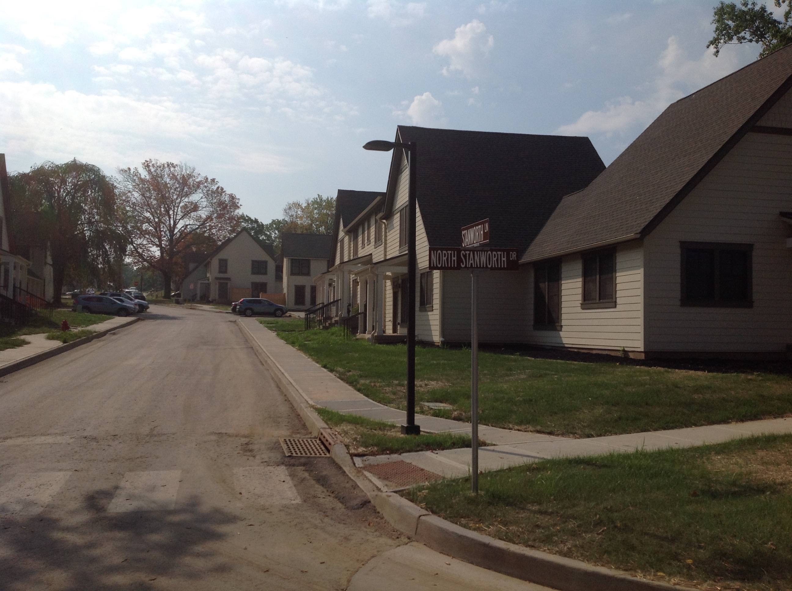 With a total of 326 units, the Merwick-Stanworth site is the largest single redevelopment in Princeton in recent years, although some of the new units replace existing homes in the old Stanworth apartments. The overall direction of the redevelopment was set as a result of community meetings that took place around 2006, and final planning approval was granted in late 2012. Spaced over 25 acres, the overall density of housing works out to about 13 units per acre.