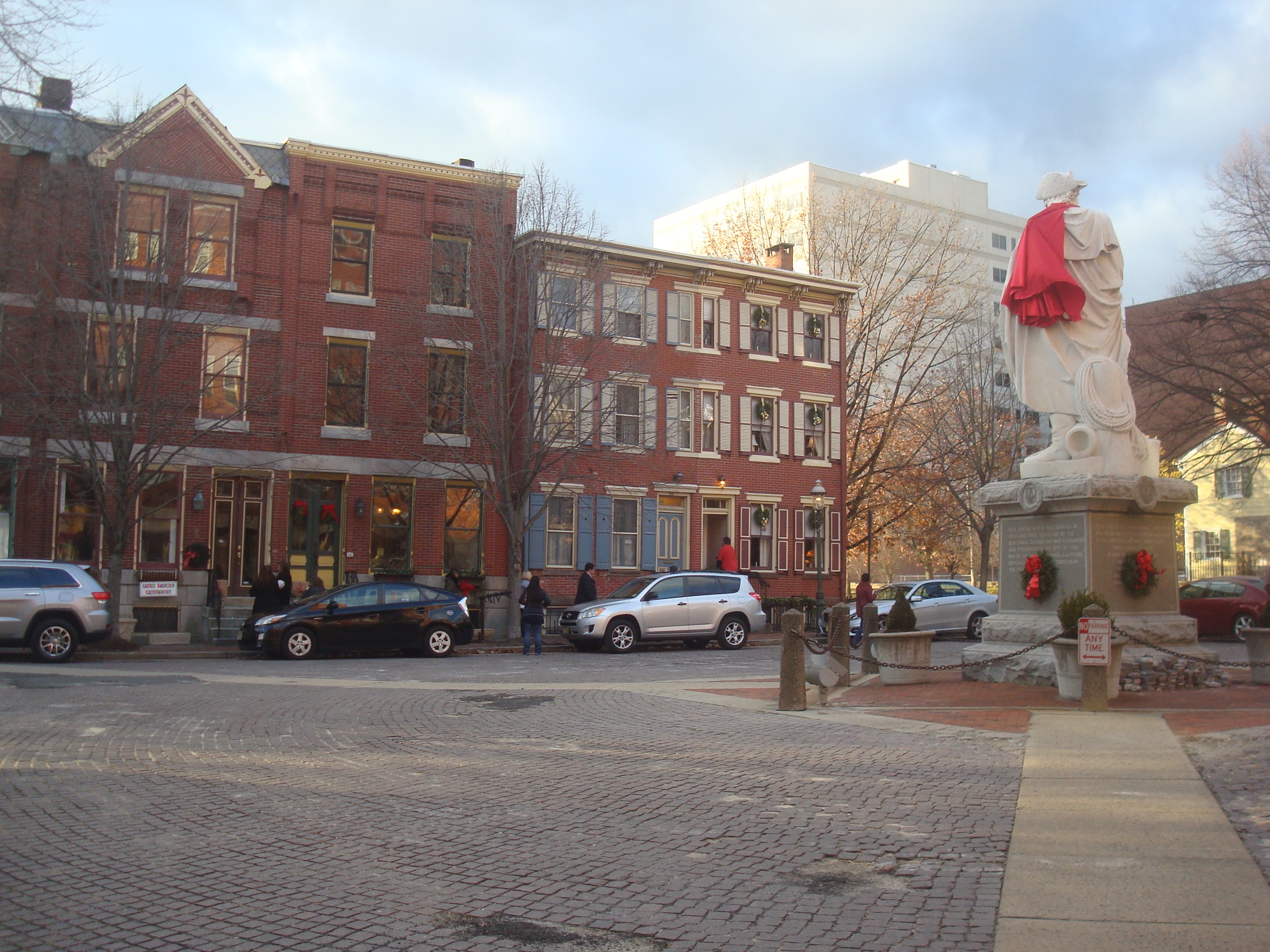 …most of the open houses are reached by following the path along the pretty Assunpink Creek, to South Montgomery Street with its statue of George Washington.