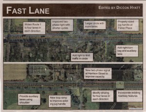 Plan of road expansion project on Route 1 around Washington Road – Harrison Road. Image by US-1 Newspaper / Diccon Hyatt.