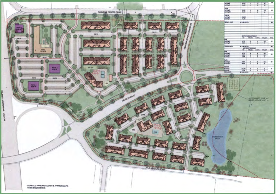 The proposed ‘Roseland / Mack Cali’ development in West Windsor, NJ (click to expand)