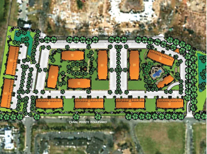 So-called because it is apparently just ‘400 steps’ from Princeton Junction rail station, this site has long been a target for redevelopment. We first wrote about it back in 2004. Whereas the original plan had 4 buildings and 39 units, the current plan calls for 100 units in six buildings. 20 of the units would be designated as ‘affordable’.