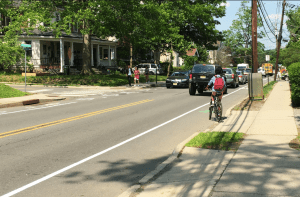 The town faces a challenge to strike the right balance on Wiggins St. One goal to make the street safe for all road users. Last year the town conducted a trial of painted bike lanes on part of Wiggins Street and Hamilton Avenue, to see if they would be compatible with other road uses. The town also hopes to provide space for car parking on these streets, and to continue to to help drivers bypass traffic on Nassau Street. But is it really a good idea to invite traffic into the neighborhood?