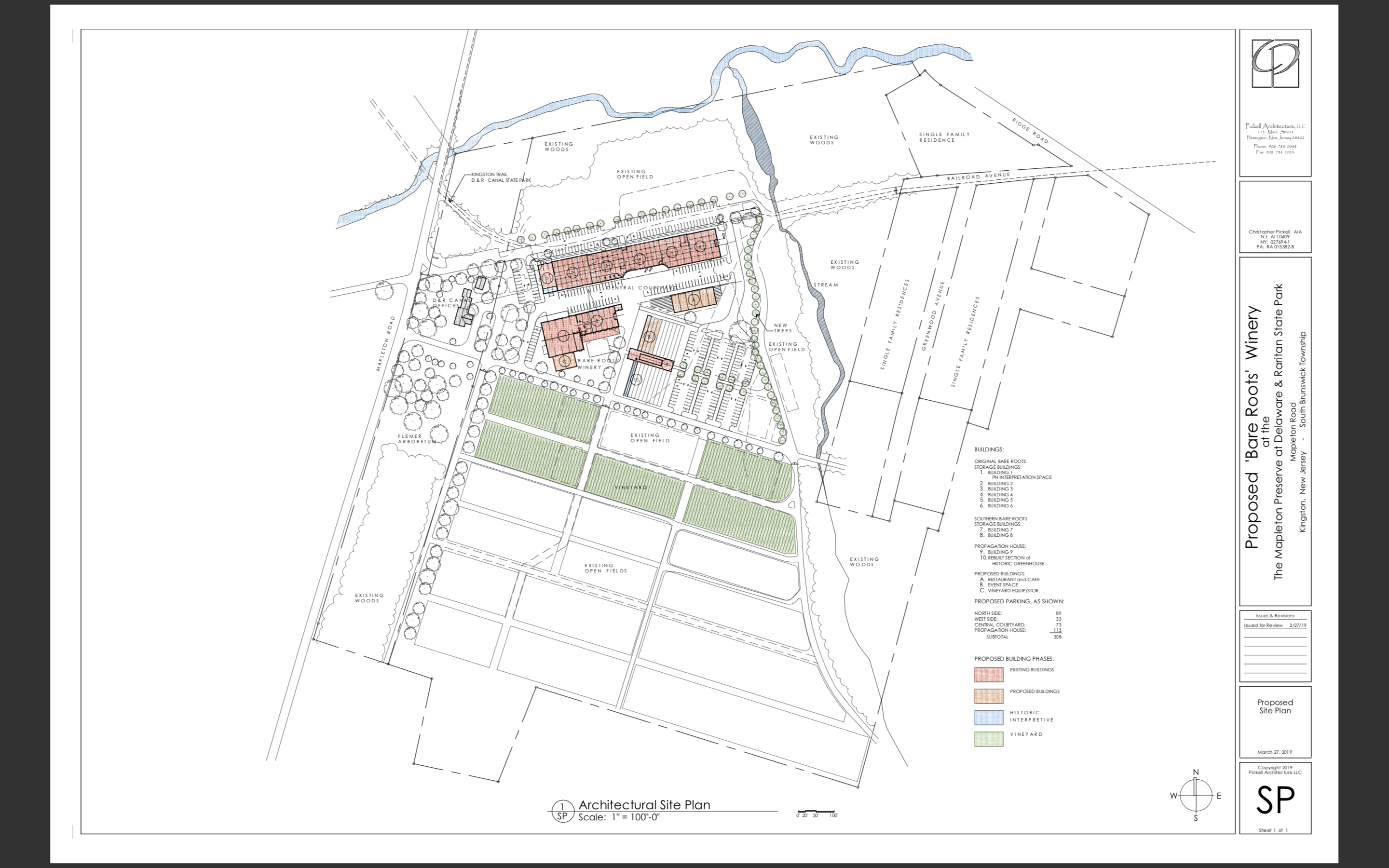 Proposed site plan for redevelopment of Princeton Nursery buildings in Kingston NJ (click to expand)