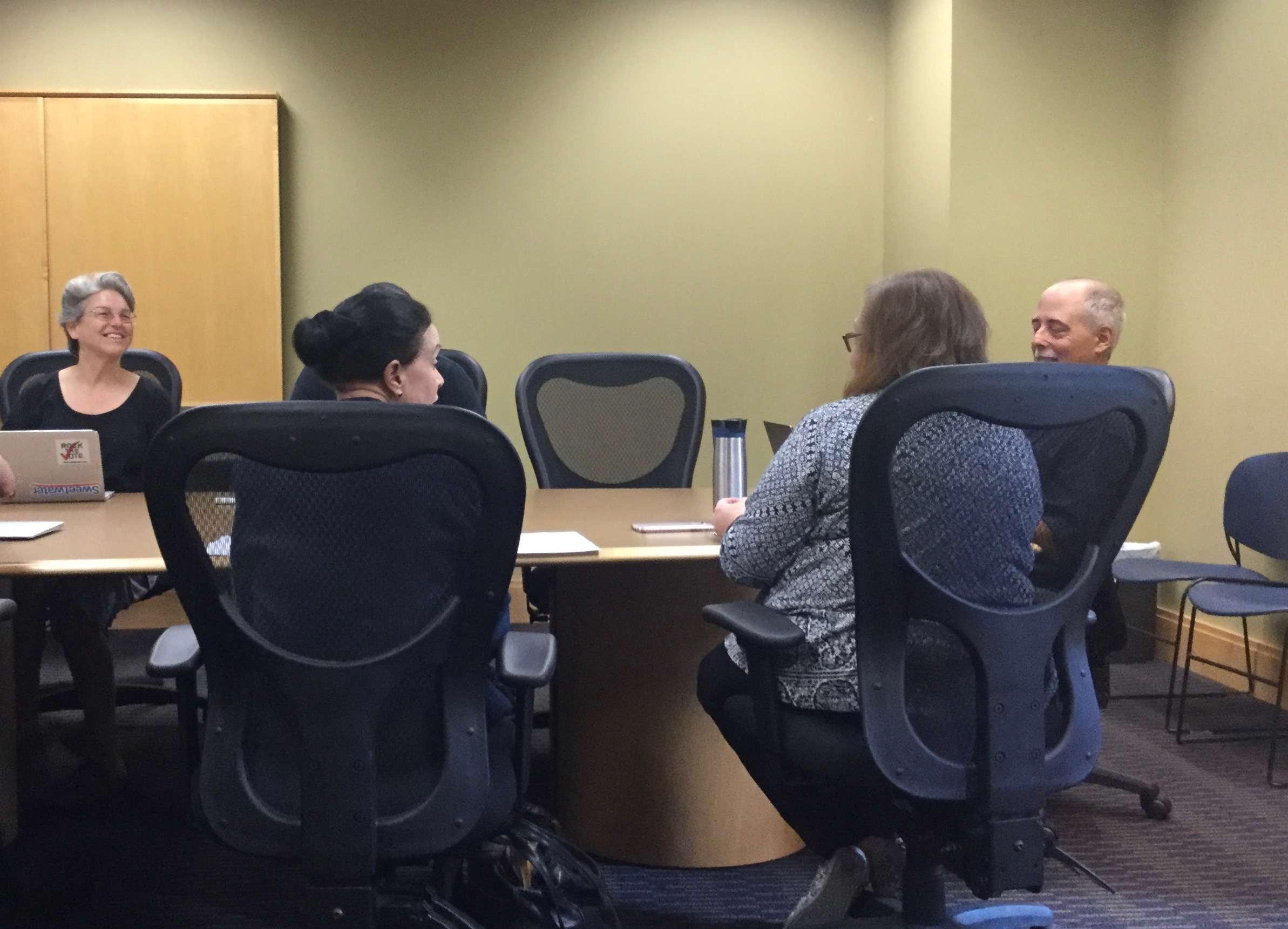 Members of the Planning Board Master Plan Subcommittee enjoy a moment of levity before the meeting Friday. (click to expand)