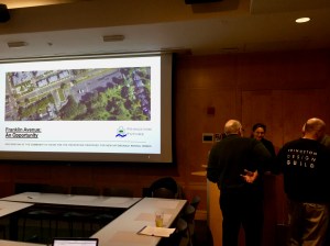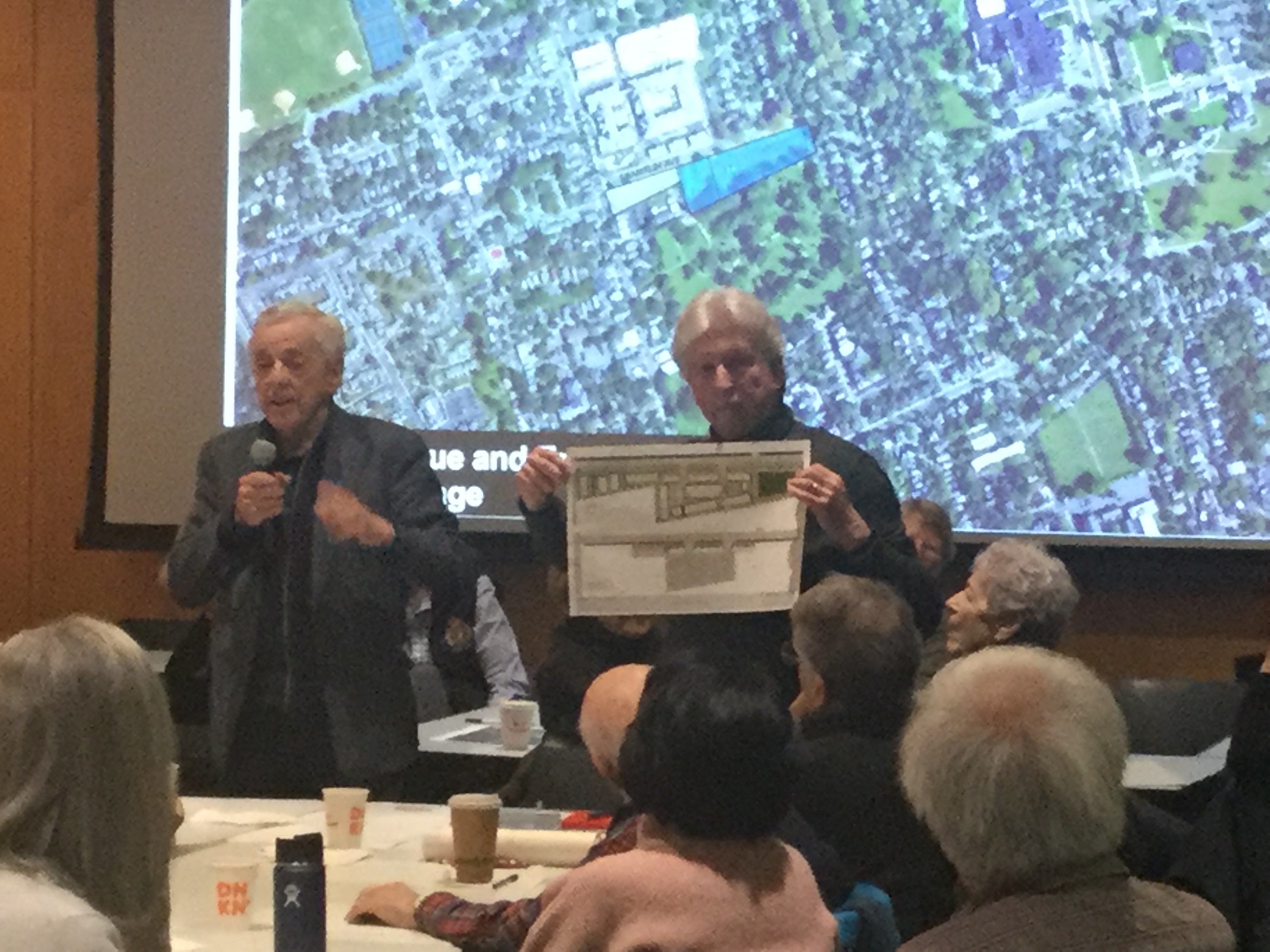 Architect Bob Hillier presents a concept plan for housing at the Franklin Ave site. (click to expand)