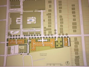 The Joel Schwartz plan also includes a new park for the neighborhood and ‘podium parking’ similar to the Hillier plan as a way to reduce the visual impact of large surface parking lots, without incurring the cost of digging out an underground parking structure. One issue with the current Hillier and Schwartz concepts is that they both include the corner lot at Franklin Ave and Witherspoon Street. As discussed at the beginning of the Saturday meeting, this lot is going to be retained by Princeton Housing Authority. The Princeton Housing Authority wants affordable housing at this corner lot to have a ‘Princeton preference’, that is, to be reserved for people with a family connection to Princeton. Such local preferences are not allowed in federally-funded projects, so this lot will be split off from the rest of the land for redevelopment purposes.