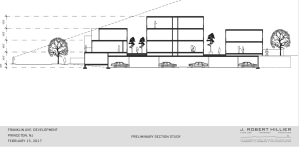 Hillier’s plan included a park around the intersection of Franklin Ave and Harris Road, and parking partially buried in a lower level beneath the proposed housing: