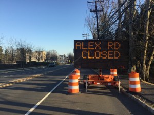 Display board indicating the closure of Alexander St/Alexander Rd. (click to expand)