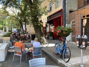 At a public meeting last week, representatives of the Princeton Engineering Department discussed plans for reconstruction of Witherspoon Street in downtown Princeton. The project is scheduled to begin next year, and the purpose of the meeting was to get further feedback about ideas for how to redesign Witherspoon St. Several concepts were presented. Witherspoon St between Nassau St and Spring St was converted to one-way traffic earlier this year, to create additional space for outdoor dining during the COVID-19 pandemic. Making this one-way concept permanent is one option that is being considered. Other options range from restoring two-way traffic, to closing the road to through traffic altogether. To evaluate which design option was preferred by the public, the engineers set up an online poll, and at the time of the meeting, the ‘overwhelming’ preference shown by preliminary poll results was for ‘Option C’, to close the street to traffic entirely.