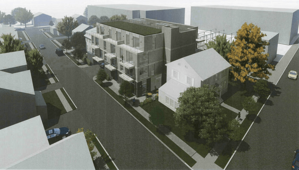 In terms of ecological features, the development would have eight EV charging stations and secure bike parking. Transit is located a block away on Witherspoon St. Stormwater runoff would be mitigated by a green roof, new rain barrels, and an underground stone storage system. Existing large street trees on Wiggins St would be maintained, and new street trees would be planted along North Tulane St. The redevelopment is expected to produce an increase of 2-3 vehicular trips per peak hour relative to the former use, which the applicant’s consultant argues will be “barely noticeable”. Based on comments from the Site Plan Review Advisory Board, the proposal is likely to progress to further review by municipal committees and ultimately the Planning Board. Sadly, the Bayard Rustin Center for Social Justice, which occupied offices at the back of the site, will be displaced as part of the redevelopment. They are apparently still looking for a suitable space to continue their advocacy work.