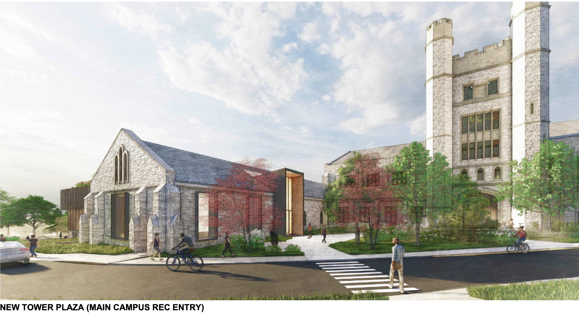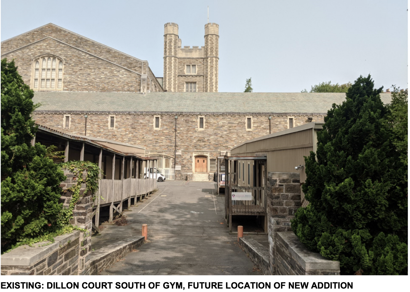 Improvements to energy efficiency and stormwater handling would be part of the Dillon Gym modernization. The new addition would have a ‘green roof’, and new pervious pavers, bioswales, and infiltration trenches would ensure that the redeveloped site produces less stormwater run-off than under existing conditions. No increase in traffic is expected from the redevelopment. Vehicular access, where it is required, would be via Dillon Court Drive, but is anticipated to be limited to utility vehicles, deliveries and emergency services. The University’s site plan application also considers historic preservation, a matter that has caused substantial discussion regarding the University’s new Engineering and Environmental Sciences Complex. The University notes that the Dillon Gymnasium is not part of a local historic district, and is not subject to local regulations. The refurbishment will nonetheless follow preservation standards established but the U.S. Department of the Interior for historic structures.