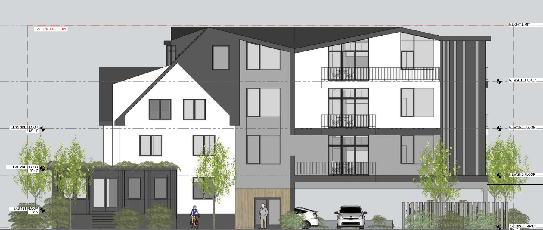 The site owner is the Princeton International Property group, represented on the application by vice-president Arieh Feigenbaum. The architecture on the redevelopment proposal is by Marina Rubina, who is based in Princeton. The existing structure stands behind Kopp’s Cycle Shop at the intersection of North Tulane St and Spring St. This is an incredibly walkable site, situated right next to all the amenities of downtown Princeton, and within one block of transit routes on Witherspoon St and Nassau St. The building that currently stands at this site is used for offices with two residential units above. According to the redevelopment plan, this building would be retained, but substantial new additions and remodeling would create a much larger amount of usable space. No zoning variances are required for the redevelopment proposal. The new structure would rise to a maximum of four stories.