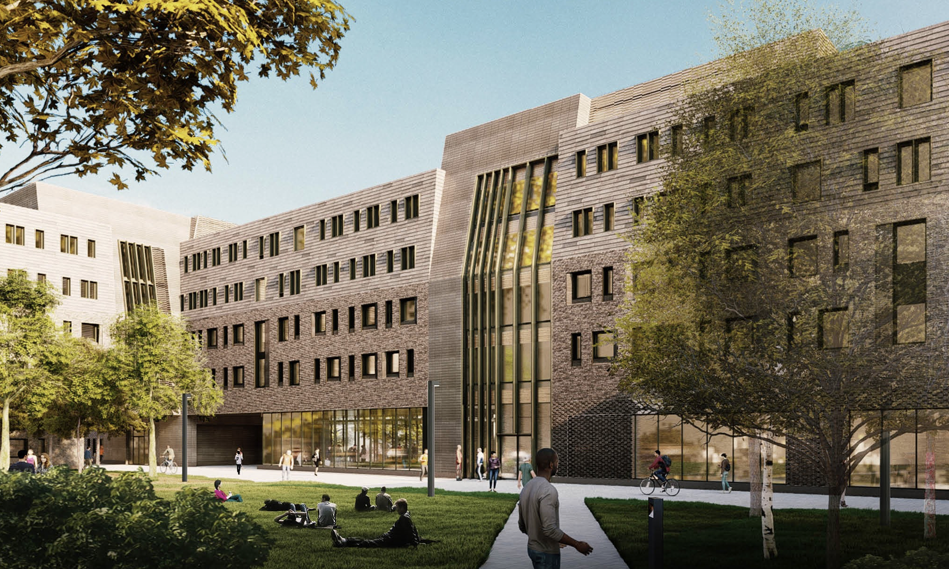 The new Hobson College will also demonstrate a range of advanced ecological considerations, with the goal of achieving LEED Gold certification. McCoy explained that the University had considered the possibility of attaining an even higher standard of energy efficiency (the ‘Passivhaus’ standard) but had ruled it out because it would take a thousand years for the additional materials required to provide a carbon saving relative to LEED Gold. He also justified the replacement of the existing First College buildings, saying that they had very poor energy ratings, and could also not feasibly be reused to achieve the goal of a truly connected college community. Throughout the site, there will be improved plantings, and features to reduce stormwater run-off.