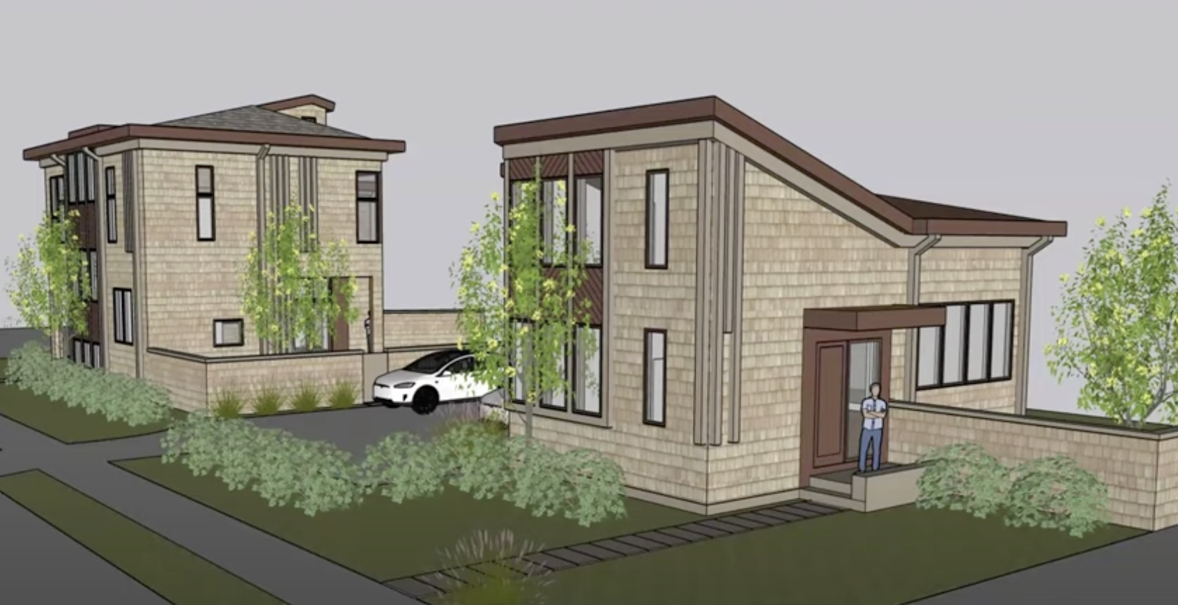 Zoning Board Chair Steven Cohen said that he would have preferred to see one single structure, instead of the multiple buildings proposed. He was also concerned about whether the setbacks were big enough. Zoning Board member Steven Schreiber was also opposed to having three buildings, and strongly objected to the design of the buildings, which he felt was not in keeping with the neighborhood. “I don’t like these plans and I don’t think they justify a variance,” he said. Zoning Board member Eve Coulson noted that ADUs are allowed by municipal ordinance, and recalled that the Zoning Board is only supposed to evaluate variances, not the design of buildings. She called the proposal “a really great plan”, noting that the architect had made substantial revisions since the first hearing.