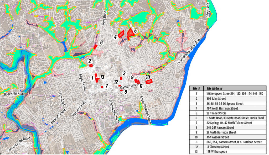 Notable sites that are not included in this plan include the Westminster Choir College site, the Princeton University Butler Tract, and Springdale Golf Club.