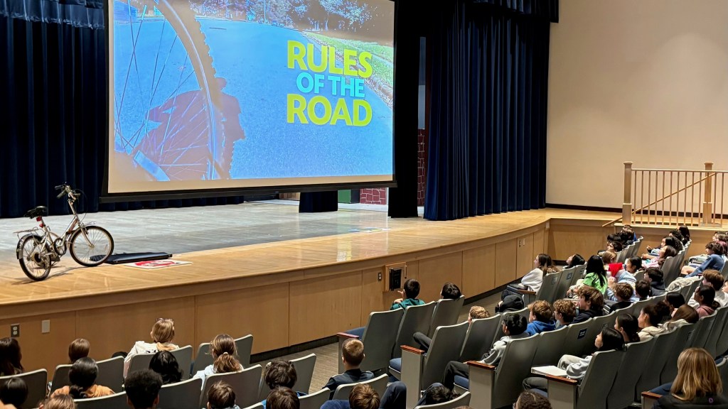 Last week, Princeton Middle School students participated in ‘bike assemblies’, featuring safety experts from Greater Mercer TMA and the Princeton Police Department. The goal of the sessions was to learn about the shared responsibility of navigating the community’s streets. Whether students travel by foot, traditional bicycle, or e-bike, the bike assemblies aimed to emphasize that safety begins with taking personal ownership of one’s actions on the road.