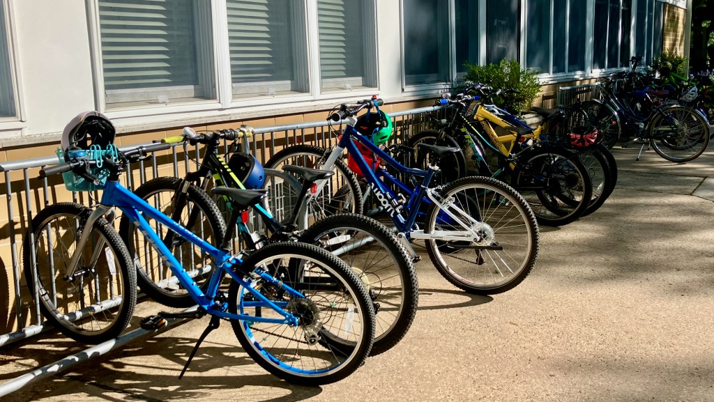 Bicycles at Community Park Elementary School at a ‘Walk and Wheels Wednesday’ in May 2025